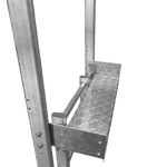 Udstigningstrin 200 mm i skridsikkert rustfri stål. Nem at montere – boltes blot fast med 4 bolte i udstigningen på stigen.